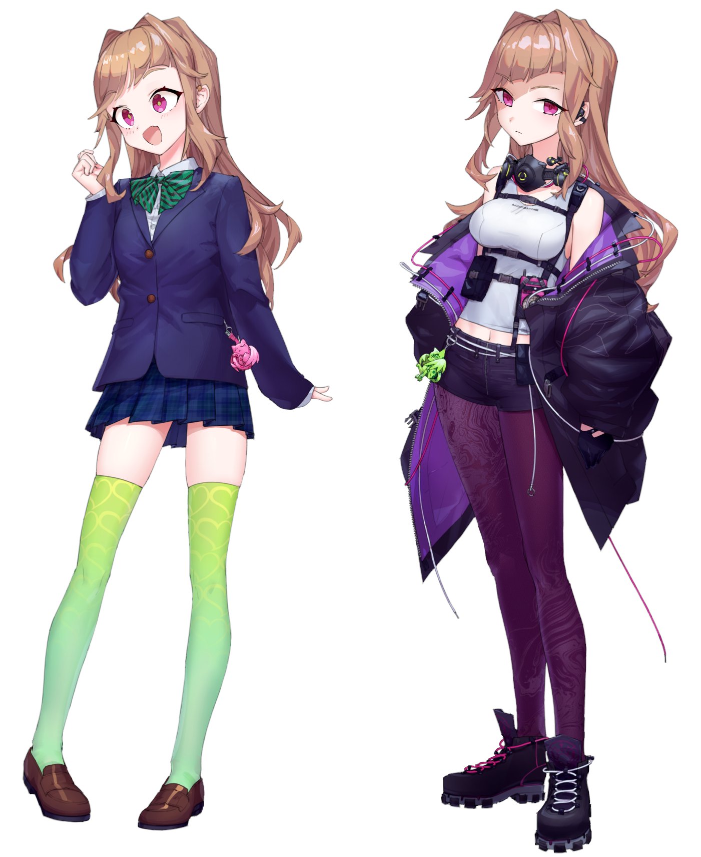 校門に立つ少女:どちらかと言えば物々しい……“仕事着”に近いような。